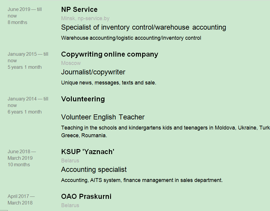 國籍: 俄羅斯 求職意向: 教師