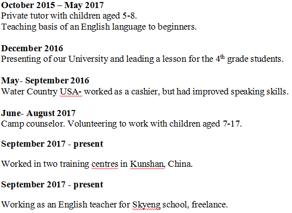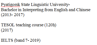 國(guó)籍: 俄羅斯 求職意向: 教師