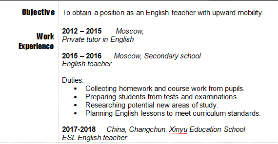 國(guó)籍: 俄羅斯 求職意向: 教師