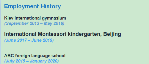 國(guó)籍: 俄羅斯 求職意向: 教師