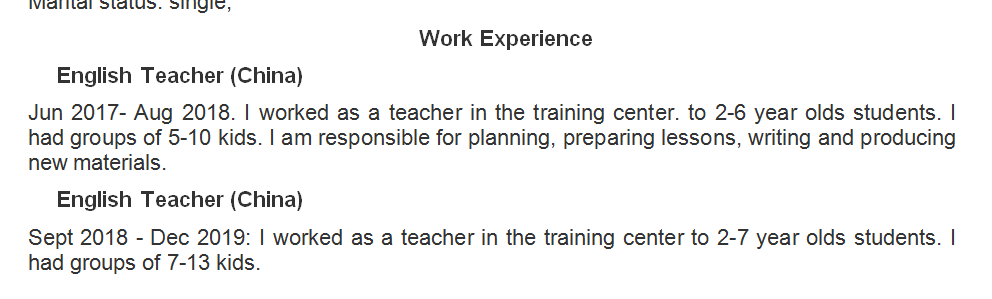 國(guó)籍: 格魯吉亞 求職意向: 教師
