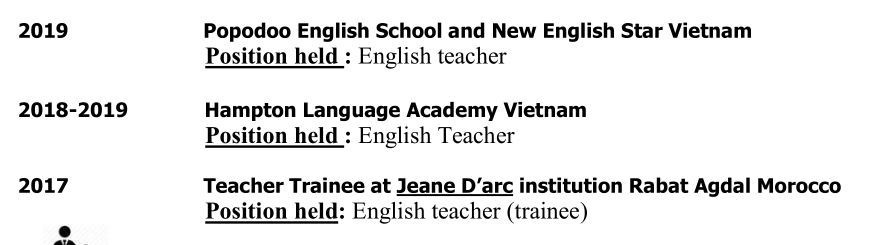 國籍: 約旦 求職意向: 教師