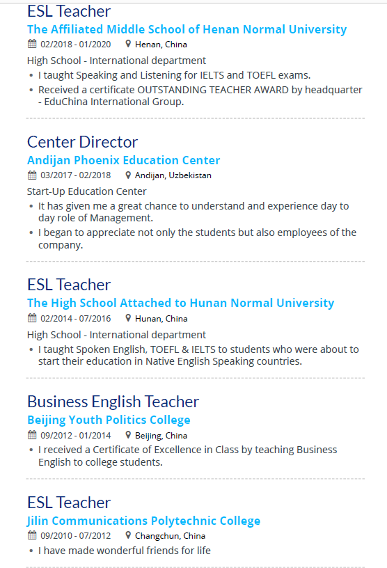 面試詳情:『全國均可』的用人單位可約該外教面試