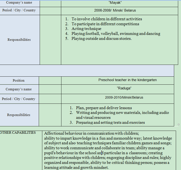 國籍: 格魯吉亞 求職意向: 教師