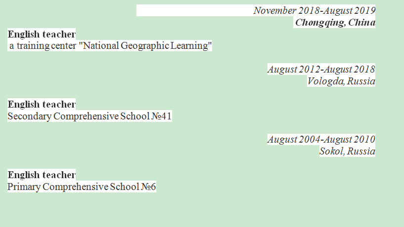 國(guó)籍: 俄羅斯 求職意向: 教師