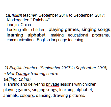 國(guó)籍: 俄羅斯 求職意向: 教師