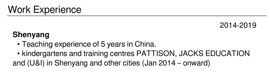 面試詳情:『沈陽』的用人單位可約該外教面試