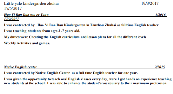 國籍: 約旦 求職意向: 教師