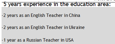 國籍: 俄羅斯 求職意向: 教師