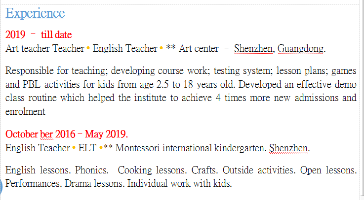 國(guó)籍: 俄羅斯 求職意向: 教師