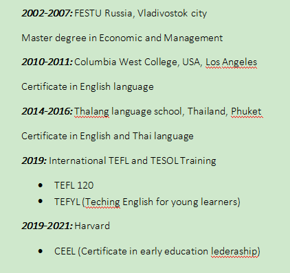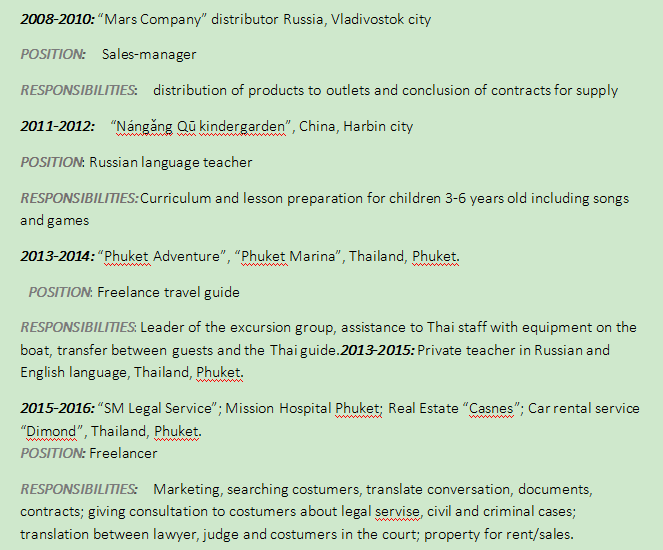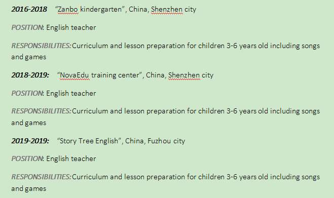 國籍: 俄羅斯 求職意向: 教師