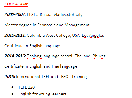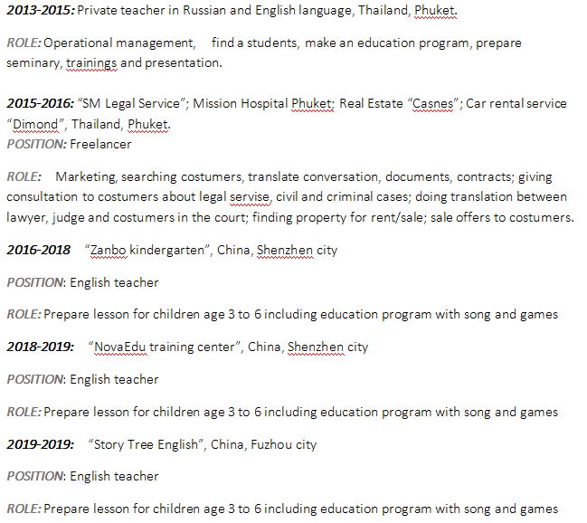 國籍: 俄羅斯 求職意向: 教師