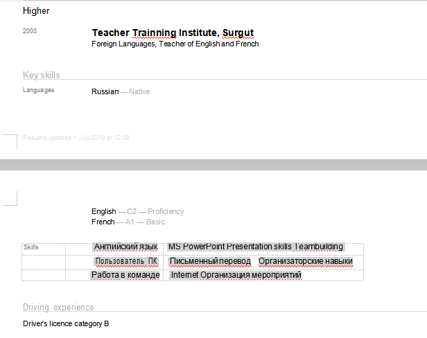 國籍: 俄羅斯 求職意向: 教師