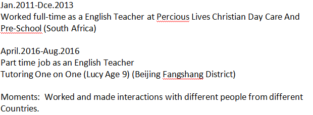 國籍: 加納 求職意向: 教師