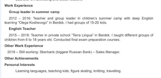 國(guó)籍: 俄羅斯 求職意向: 教師