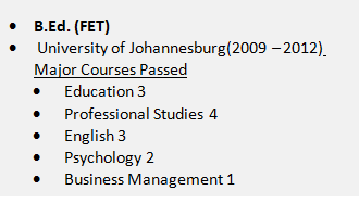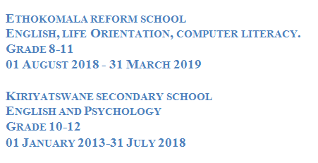國(guó)籍: 南非 求職意向: 教師