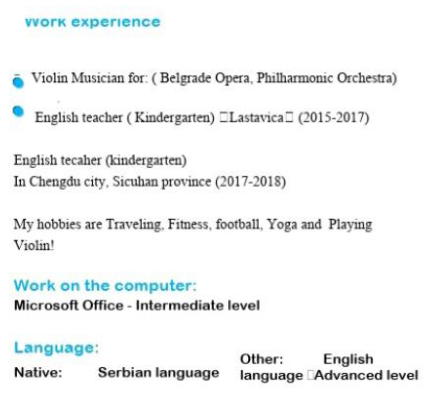 塞爾維亞 在深圳, 簽證自理, 會樂器-小提琴 深圳工作優(yōu)先考慮, 其他城市也考慮 |