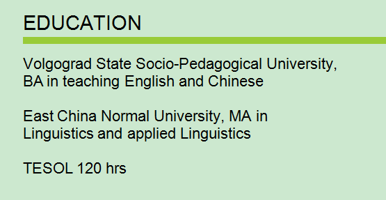 國(guó)籍: 俄羅斯 求職意向: 教師