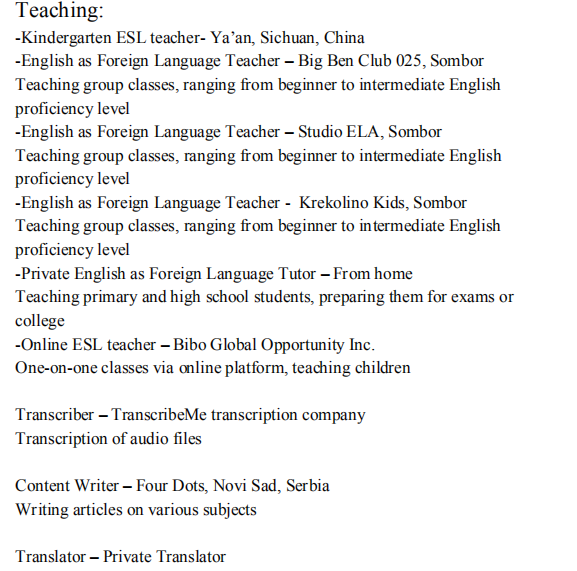 國(guó)籍: 塞爾維亞 求職意向: 教師