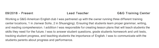 國籍: 加拿大 求職意向: 教師