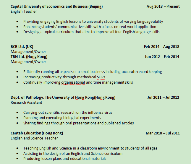 國籍: 英國 求職意向: 教師