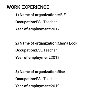 外教的工作經(jīng)歷