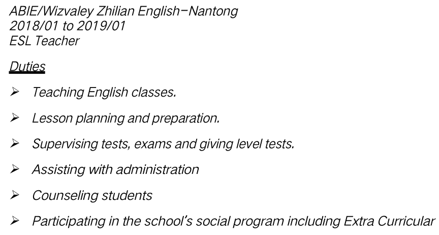 國(guó)籍: 澳大利亞 求職意向: 教師