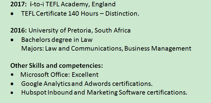 本科 tefl都有 工簽資料全 |