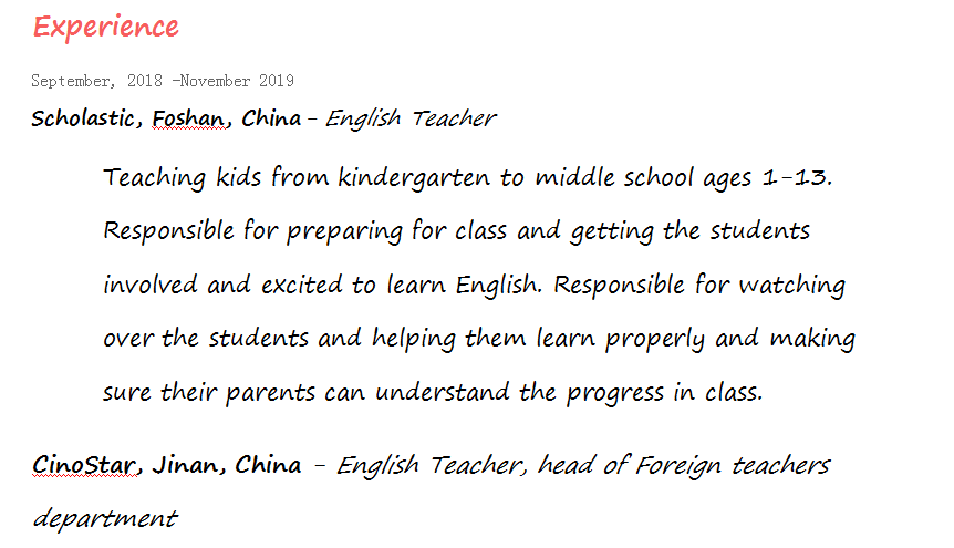 面試詳情:『線上工作』的用人單位可約該外教面試