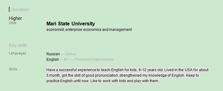 國籍: 俄羅斯 求職意向: 教師