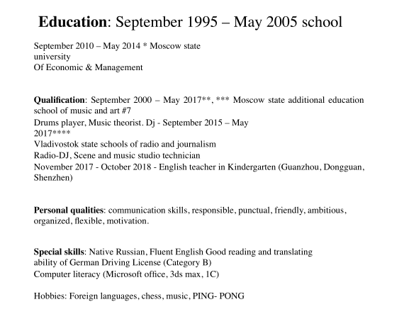 國(guó)籍: 俄羅斯 求職意向: 教師
