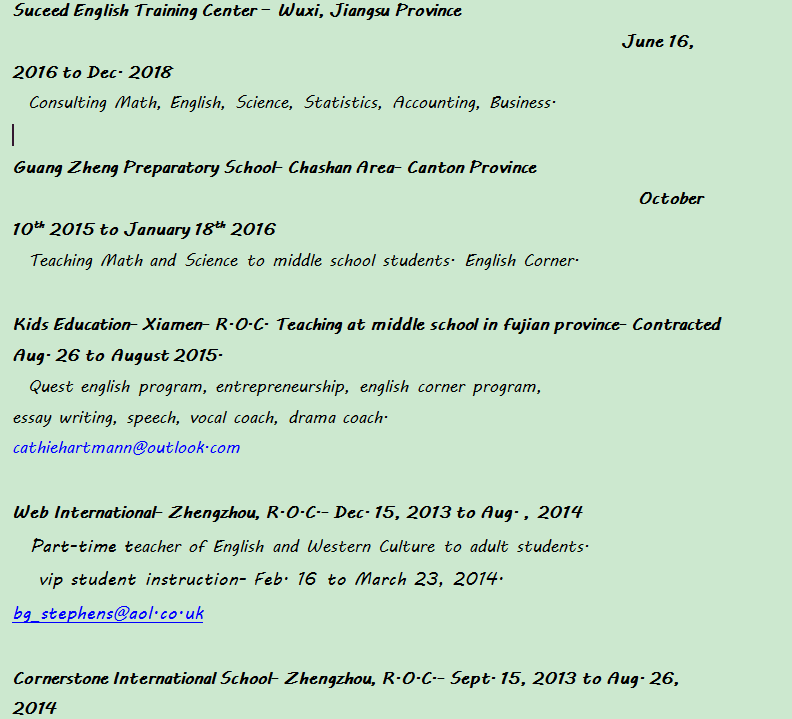 國(guó)籍: 美國(guó) 求職意向: 教師