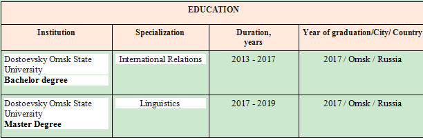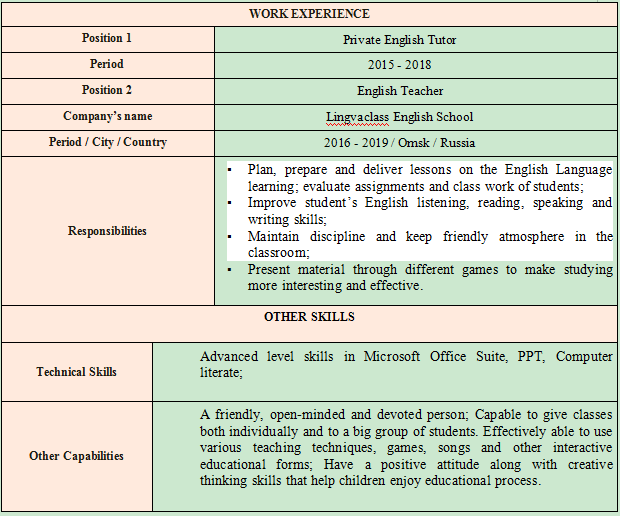 國(guó)籍: 俄羅斯 求職意向: 教師