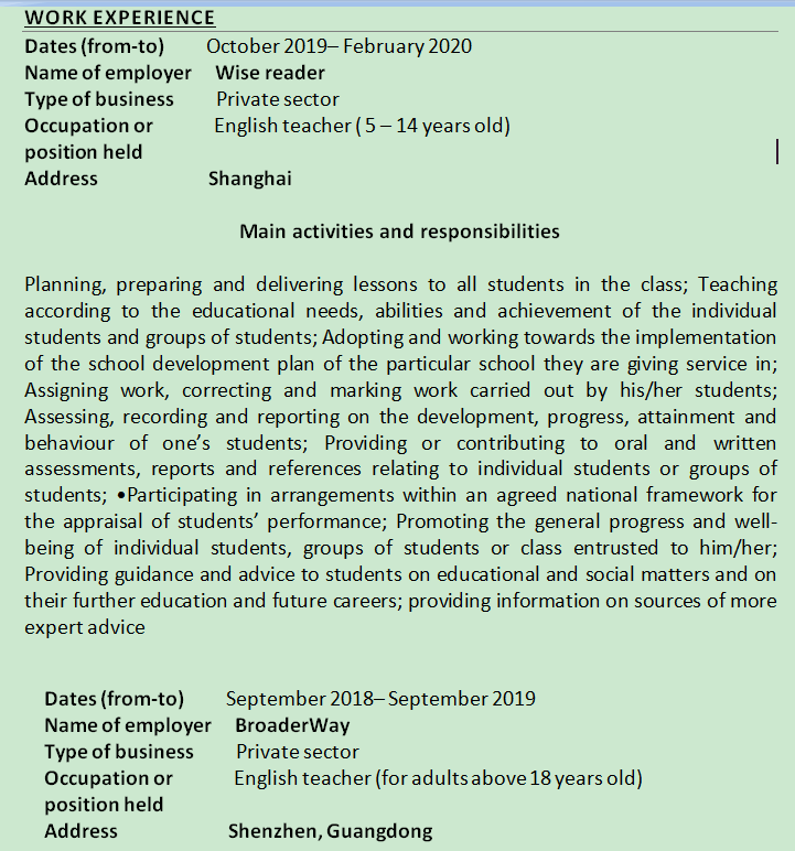 國(guó)籍: 南非 求職意向: 教師