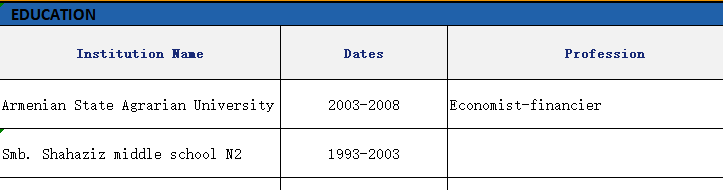國(guó)籍: 亞美尼亞 求職意向: 教師