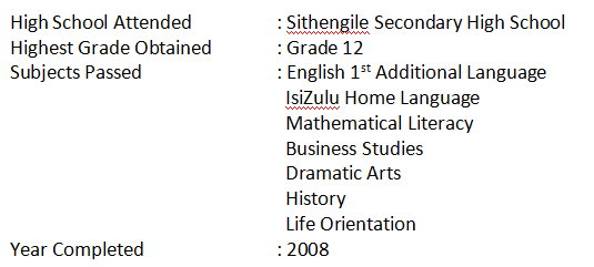 國籍: 南非 求職意向: 教師