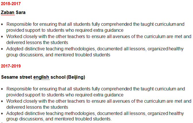 國籍: 加拿大 求職意向: 教師