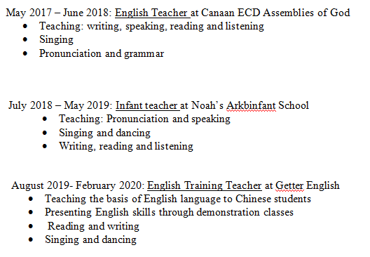 學歷: 本科 期望薪資: 8000-11000(Yuan/M)