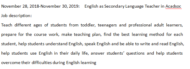 國籍: 其他 求職意向: 教師