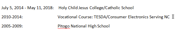 國籍: 菲律賓 求職意向: 教師