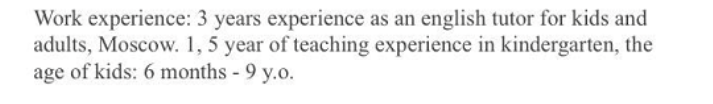 國籍: 俄羅斯 求職意向: 教師