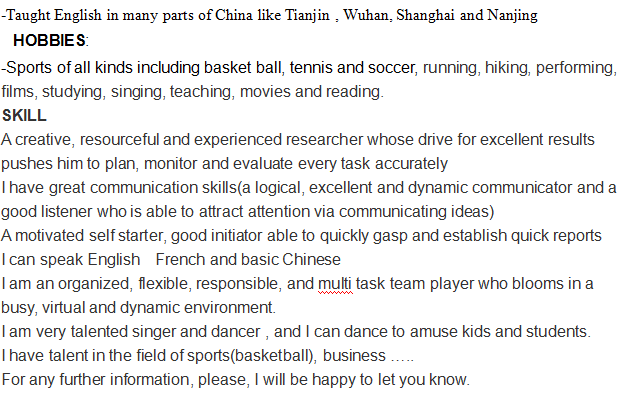 國(guó)籍: 塞爾維亞 求職意向: 教師