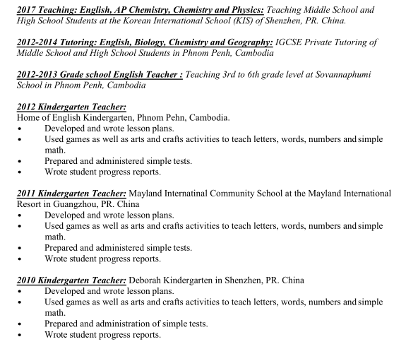 能教授學科, 口音好, 經(jīng)驗多, 有責任感, 能力強 |