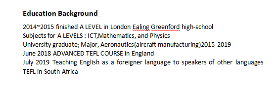 國(guó)籍: 南非 求職意向: 教師