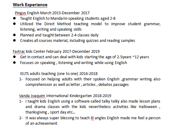 國(guó)籍: 摩洛哥 求職意向: 教師