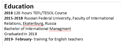 國籍: 俄羅斯 求職意向: 教師