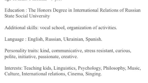 國(guó)籍: 俄羅斯 求職意向: 教師