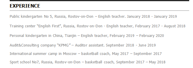 國(guó)籍: 俄羅斯 求職意向: 教師