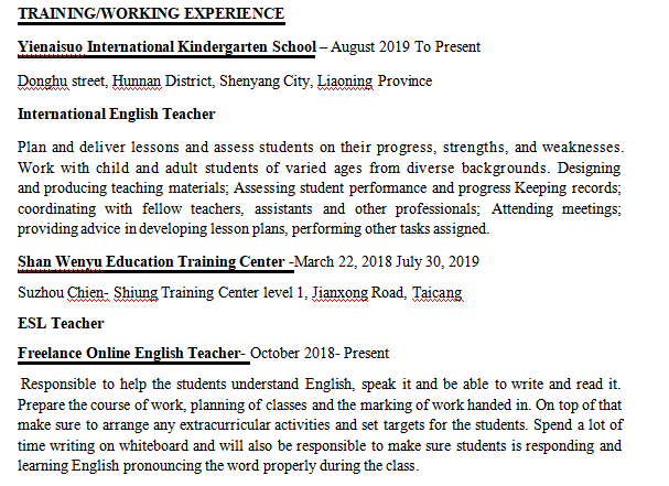 國(guó)籍: 摩洛哥 求職意向: 教師