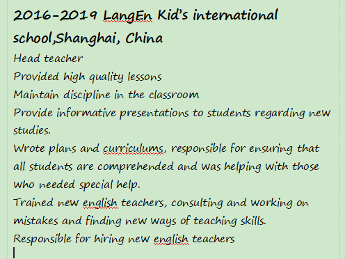 國(guó)籍: 俄羅斯 求職意向: 教師
